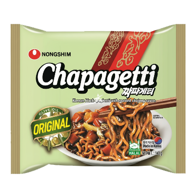 צ׳אפאגטי (Chapagetti) הוא נודלס קוריאני פופולרי בטעם רוטב ג׳אג׳אנג (שחור־מתוק), בהשראת המטבח הסיני־קוריאני. מנה מהירה להכנה – רק להרתיח, לסנן ולהוסיף את הרוטב המצורף. מושלם לארוחה חמה ומשביעה תוך דקות.