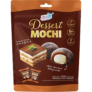 חטיף מוצ'י של YUKI & LOVE בטעם טירמיסו משלב מרקם רך ולעיס עם טעמים איטלקיים עשירים של קפה, קקאו ומסקרפונה. נשנוש אסייתי מפנק שמתאים לכל רגע.